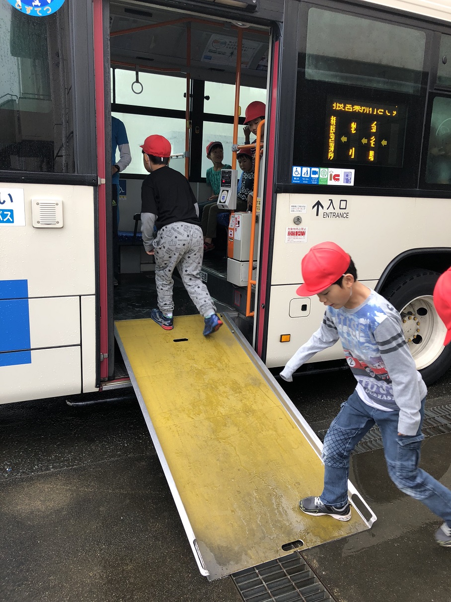 |   | 先週木曜日に地区の交流会がありました。 路線バスにのって相良まで行くということで、交流会の前にはバスの乗り方の練習もしました。