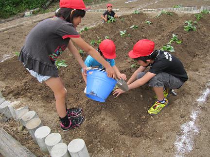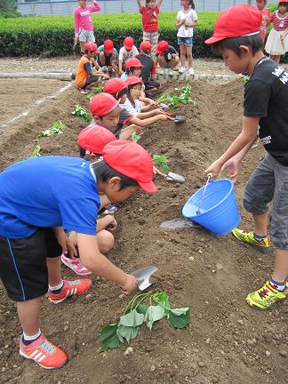 上 6日(木) さつまいもの苗を植えました。秋の収穫が楽しみです。
