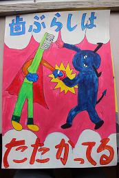 まずは歯の健康ポスターを描いた、雄大さんと愛音さんの作品です。とてもきれいで工夫された2人のポスターを今日は紹介します。