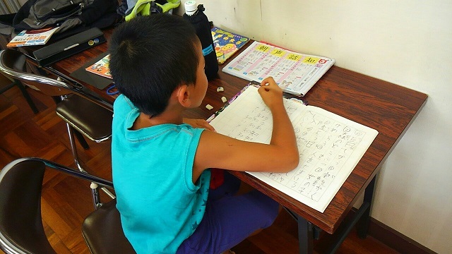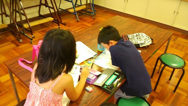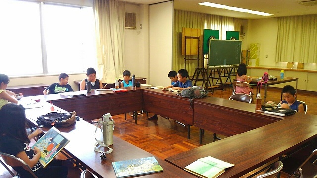 8月19日火曜日学習会の様子。ほとんどの子が夏休みの宿題も終わっていて、読書をしたり、自主勉強をしていた。高学年の子が低学年の子の勉強をみてあげている姿もみられた。