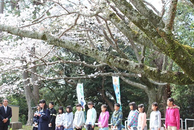 菊川公園の、大きな桜の木も、