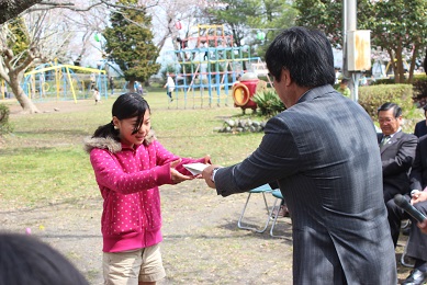 各学校の代表者と一緒に、会に参加し、学校の子どもたちが飲むことができる、1年分のお茶をいただきました。