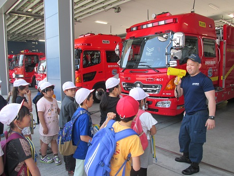 少し前になりますが、3・4年生が合同で〈牧之原市相良消防署」と「牧之原警察署」を見学してきました。その様子をお知らせします。