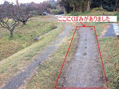 昨日12/5、チャレンジ走の練習をチャレンジタイムに行っていたところ、上と下 のグラウ ンドの間の道路に深いくぼみができて危険であることがわかりました。その話を聞いた下のグラウンドの隣のお茶畑で作業をしていた5年秋山夢奈さんのお父さんが、下の写真のようにくぼみに土砂を入れて平らにならしてくださいました。チャレンジ走大会に間に合うようにとすぐに埋めてくださいました。ありがとうございました。