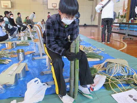 12月21日(月)に6年生とかがやき学級で地域の人の御協力のもと門松づくりを行いました。 一人ずつ、材料がばっちり用意されていて、準備からびっくりでした。