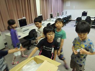 行く前に教室でパソコンの台数を予想したところ、「100台はあるんじゃないかな?」といった声も聞かれました。パソコン室では、短い時間だったものの、マウスをクッリクして、簡単なパソコンの操作も行いました。