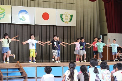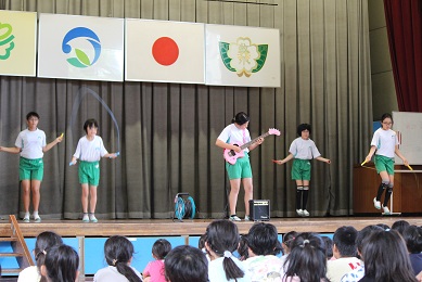 5年生 リズム縄跳びとエレキギターのコラボ「ウルトラソウル!」