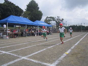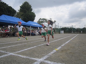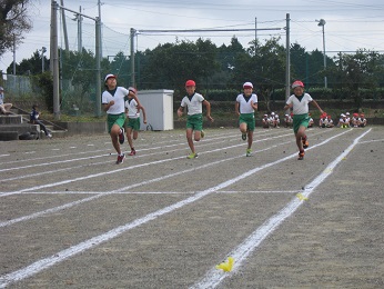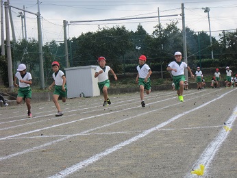 2017 運動会 9月24(日) スローガン 赤・白ともに本気で挑め!勝利めざしてつっぱしれ!! ひまわり かがやけ 80m走!!(3年生)