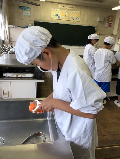 真剣に皮むきをしているね。