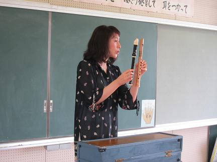 27日(月)に、3年生を対象にリコーダー講習会が行われました。講師の海野文葉さんがリコーダーの演奏のこつを分かりやすくお話ししてくれました。また、持ってきたいろいろなリコーダーを見せて、楽しく演奏までしてくれました。