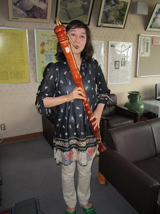みんなで一緒に吹いてみよう こんな大きなリコーダーも吹いてくれました