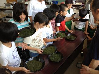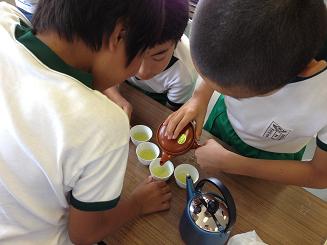 7/12は今年3回目のクラブ活動がありました。 今回のティークラブ(お茶クラブ)は、講師の河原崎さんがもってきてくれた品評会1位のお茶をはじめとして、上位入賞のお茶の飲み比べをしました。 子どもたちはいろいろなお茶を見くらべながら、どのお茶を飲んでみようか迷いながらも何杯もお茶を飲んでいました。お茶の入れ方で味が違ったり、二煎目では味が濃くなったりと、いろいろと学ぶことが多くありました。  |  |
