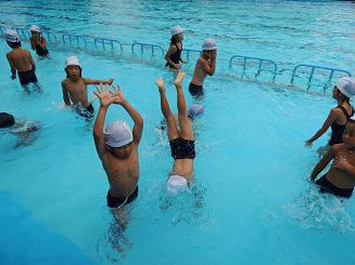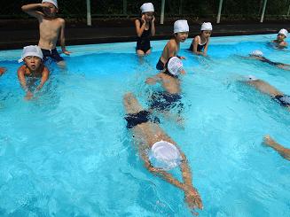 |   | プールで逆立ち? 今日の5時間目、国語の時間には「しらせたいことをかきましょう」の学習で、お母さんに作文を書きました。最後となる今日の題は「ぷうる」です。2時間目にプールに入ったときのことを写真で振り返った後、書き始めました。題が大好きなプールに入ったことということもあり、いつも以上に多く文章を書くことのできる子がたくさんいました。今プールでは、浮くに加え、逆立ちもやっています。逆立ち名人の竜也君、だるま浮き名人のK君などの名前も、子どもたちの作文の中に登場しています。また、子どもたちが作文を持ち帰りましたら、返事を書いていただきます。よろしくお願いします。