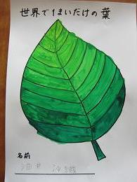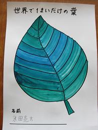 図工で、絵の具を使って、「世界で一枚だけの葉っぱ」を描きました。それぞれすてきな色を使ってきれいな葉っぱができました。