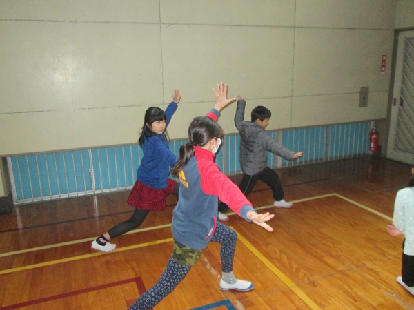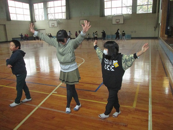この取組は、踊りを教えると同時に、協力平の心を伝えることです。牧小らしい取組でとても素敵な時間です。