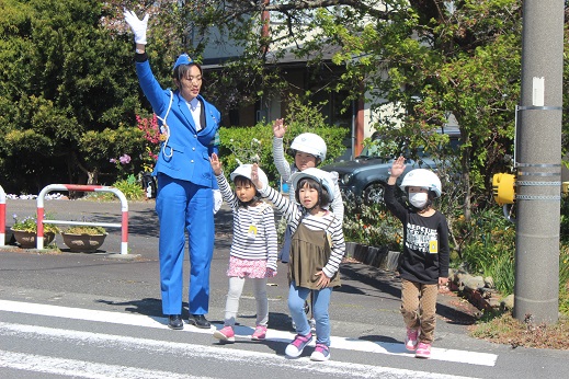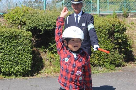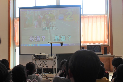 1~3年生が参加しました。歩行で道路を渡る練習をしたり、交通ルールについてのクイズを解いたりして交通安全について勉強しました。