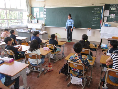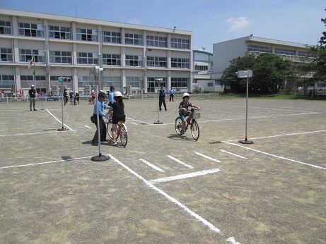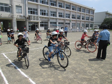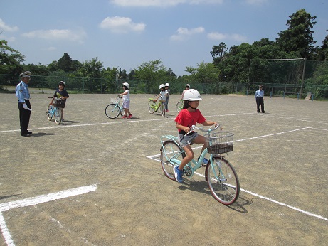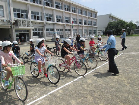 6月6日(木)に、牧之原警察署の交通安全指導員さんや、駐在所の柏木さん・地区の交通安全指導員さん方のご協力で、4年生の「自転車交通教室」が行われました。