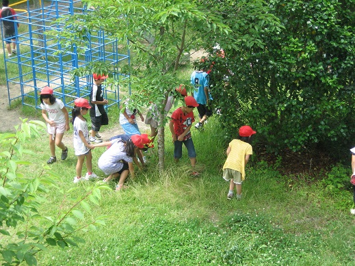 |   | |  | | 日誌今日は体育委員会の企画で、チャレンジタイムに全校宝探しが行われました。 前回は、全校逃走中でしたが今回は、宝探しです。 事前に体育委員が、運動場やめぐみの森に隠しておいた宝をみんなで探しました。 草の影や外トイレの中などみんなでいっしょうけんめい探して楽しく活動できました。