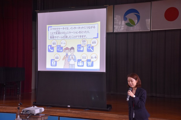 今日1時間の話を聞いて私が感じた事です。5・6年生の中にはスマホやタブレット端末、またインターネットが接続可能な電子機器(ipod・ニンテンドースイッチ・3DS含む)を持っていたり、家で使わせてもらったりしている子も多いでしょう。便利だから安易に使ってしまいがちですが、中にはこわさもあります。そのこわさを子どもたちはまだ理解せずに使っていたと思います。 今回の話で、その「こわさ」を理解できたのではないかと思います。NTTdocomo様に御協力いただいてスマホ依存、ネット依存の「こわさ」を勉強しました。