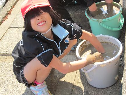 8日に、バケツに田んぼの土を入れて、ぐにゅぐにゅと耕しました。バケツの底の方まで耕すのは、とても大変そうでした。しっかり耕すほど、根がはり、いいお米がとれるそうです。今日の5・6時間目に、種もみをまきました。