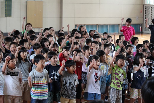 6月22日(金)のチャレンジタイムに陸上選手を励ます会がありました。下級生は、学校代表として陸上大会に出場する6年生のために替え歌を作って歌って励ましてくれました。