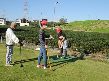 今日は祖父母の会の方にご一緒いただき、グランドゴルフ大会を行いました。