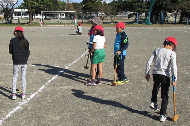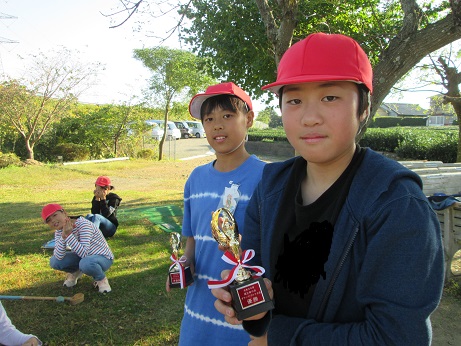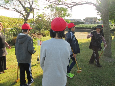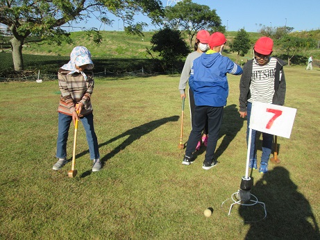 5年生は学校グラウンド、6年生は八十原グランドゴルフ場で8ホールを回りました。