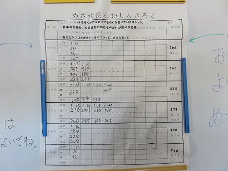 来週の水曜日1月28日に長縄大会があります。 「PTA文化部から」のページでも紹介してくれてありますが、 長縄大会に向けてみんながんばっています。 牧小の長縄大会は、本番で出た記録のみ正式記録として認められます。 練習でいくらいい結果が出ても校内新記録にはなりません。 本番の緊張感を乗り越えて記録を出せるようみんながんばっています。 毎日、チャレンジタイムや昼休みは、元気なかけ声が響いています。 今年はどんなドラマや感動が生まれるのか乞うご期待です。