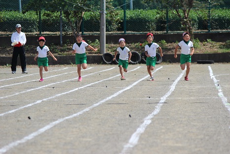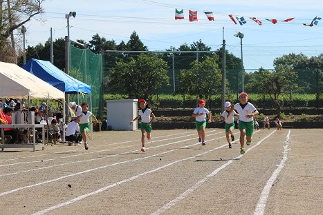 9月17日(月)に運動会が行われました。この日のために、子どもたちは夏休み前から練習を一生懸命頑張ってきました。どの種目においても堂々と走ったり演技したりしている姿が見られました。