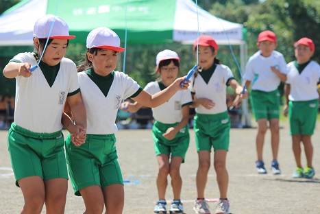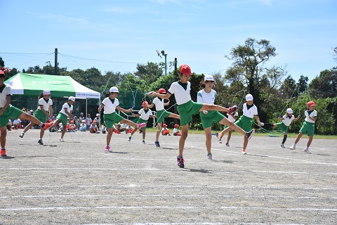 1・2年生のダンスとは違うのが、技の難易度。今年は1本の縄跳びに2人が入ってシンクロ跳びをするという高度な技に挑戦をしました。また、縄跳びを使って歩きながら円を作ったり、動きを揃えたダンスを披露したりして1・2年生とは違う中学年の表現の良さを感じました。