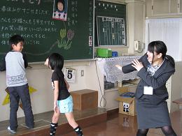 新しい事務室の先生、保健の先生、級外の先生の所に、自己紹介をしたり、インタビューをしたりしにいきました。好きなくだものや好きな遊び、好きな運動、好きなテレビ番組などを聞きました。とてもしっかり自己紹介ができました。聞き方も上手で、成長を感じました。級外の大石先生が、「だるまさんがころんだが好きです。」と言ったので、さっそく、だるまさんがころんだにさそって、一緒に楽しく遊びました。