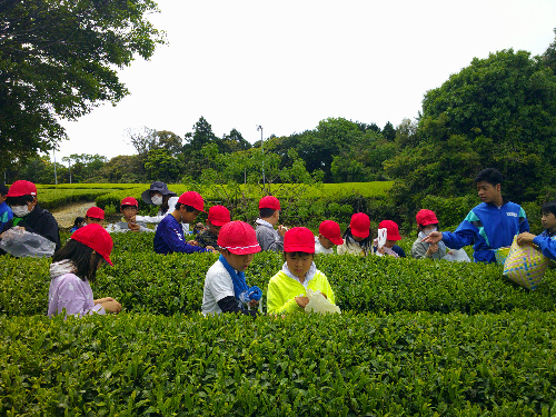 GW目前の4月26日、小中合同でお茶摘みが行われました。