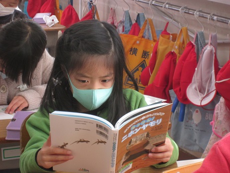 図書館で借りてきた本、真剣に読んでいるね。