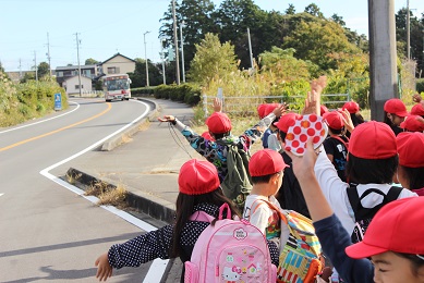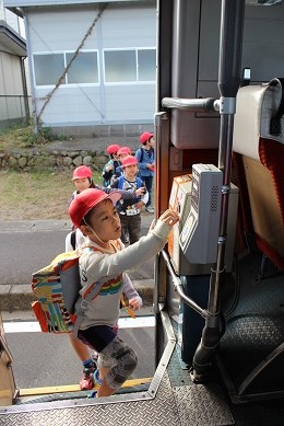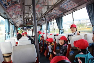 「立たないこと はしゃぎすぎないこと うごきまわらないこと バスに乗る時は 一番マナーが大事