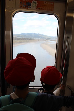 車窓から見える大井川