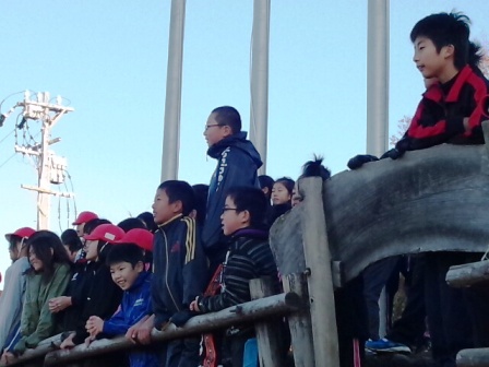 |   | 観音山から、朝の様子が送られてきました。 まずは、朝のつどいの様子です。 みんな、パッチリと目が覚めています。よく眠れたようです。 一緒に活動している、田原小学校・竜洋北小学校の子どもたちとも、たくさん友だちになれました。  旗揚げの当番なんだけれど、以外と緊張するんだよなあ! 朝から、仲間づくりゲーム?やってみると、他の学校の子どもたちとも話ができて、楽しいんだ!! 観音山名物!「きのこ体操」上手に踊れているみたい!!  朝から、「ヤッホッ!」と、山びこを・・・?山びこがかえってきたでしょうか??? 5年生の元気さなら、しっかり聞こえたね!! 空気も澄んでいるもの・・・!! |  |