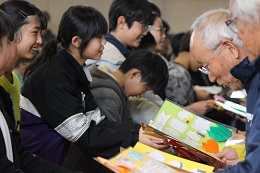 子供達からのメッセージを渡しました。今年はありがとうの気持ちをこめて折ったチューリップとハートの折り紙も添えて。