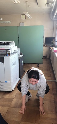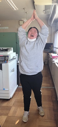 こんな感じ!大きな声で、「ト・ミ・ティ・ヘイッ!」って叫びながらやってね! (ご近所迷惑にならない程度に!!)