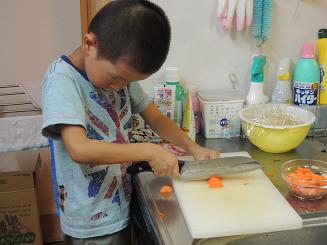|   | 夏だ!宿題だ!手伝いだ! 夏休みも残すところあと3日となりました。夏の思いではたくさんできたでしょうか? 我が家は、まだ、長男と長女の自由研究が終わっておらずヒーヒー。その横で1年の息子は、兄と姉の邪魔ばかり。 さて、夏休み前に立てた手伝い等、毎日こつこつ、また自分からやれているでしょうか?我が家の息子は気まぐれで、こつこつとはいかないようです。夏休み後半は、料理の手伝いに夢中で、「やりたい。やりたい。」と皮むき、包丁を使っての具材切りにチャレンジしています。 あと3日。まだ3日。まだまだ何かチャレンジできそうかな?