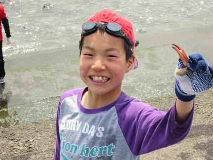 御前崎の磯で、たこには出会えなかったけど、6年生のこんな笑顔に出会いました。