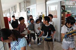 4時間目の社会で、学校のどこにどんな防火設備があるかを調べました。