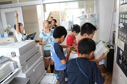 班ごとに学校の中をまわり、ワークシートに見つけた防火設備を書き込みました。