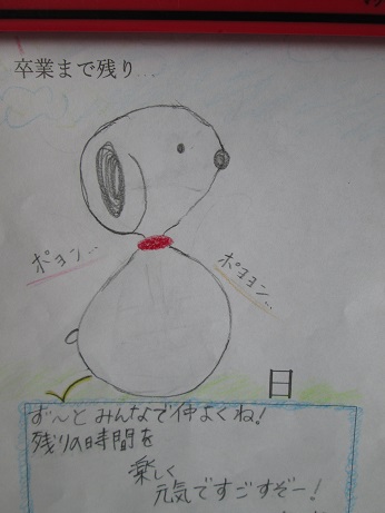 今日は卒業式練習が2時間目にあって、3時間目にはナタリー先生と外国語をやっていました。晴れていたので、外でドッジボールがやれたかなあ。でも花粉がすごそうだから私は「目がかゆーい!」と叫びながら、ボールをよけているのかな。