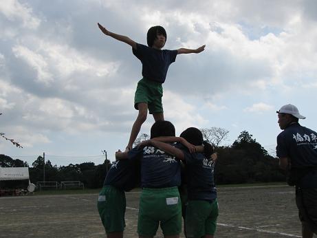 沙織さんは、1番がんばったことは、組み体操のサボテンが少しななめだったけど成功したこと。練習の時に、落ちてしまって手首をけがしてしまったので、とてもうれしかった。2番目は、ソーランで、足を間違えやすいところがを正しく踊れてよかったと話しました。