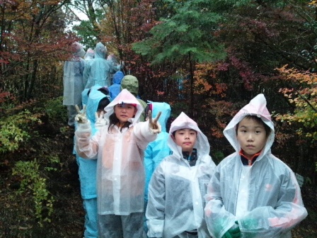 滑りやすい山道も、5年生は元気に歩いてきました!!