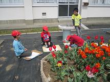 1時間の図工でしたが、外に行って見つけた春を絵に描きました。いろいろなものに目が行っているうちに、時間の足りなくなってしまう子もいましたが、なんとか描いていました。教室に掲示するつもりです。