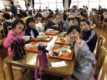 配膳も片付けもてきぱきできる5年生。食堂の職員さんにもほめられました!