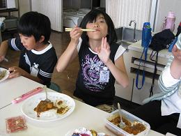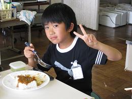 5月31日は、お弁当の日でした。チャンス到来。カレーライスを作りました。かがやき1組と2組で協力して作りました。沙織さんの手慣れた手際よさ、素晴らしかったです。亮太さんは、ジャガイモの皮むきが昨年よりとても上手になりました。用具洗いや片づけも進んでやりました。おいしいカレーライスと甘い玉ねぎのサラダ、ほかほかジャガイモ、楽しい会食でした。