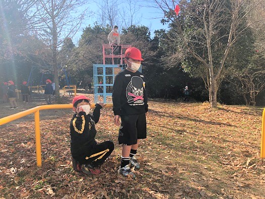 写真はめぐみの森の様子だけですが、グラウンドではドッヂボールやサッカーなどで遊んでいる子が多くいました。みんな元気だね!