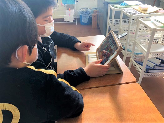 外で遊んだ後は手洗いうがいを済ませて、お勉強が始まります。 かがやき1組ではiPadを使って算数の勉強をしました。